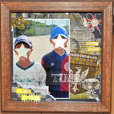 ちょうど、メモラにBo Bunnyの新しいラインが入ってきたところで、雰囲気とぴったりで、ボーイッシュな感じをあまり作らない私ですが、とても気に入ったので作ってみました。