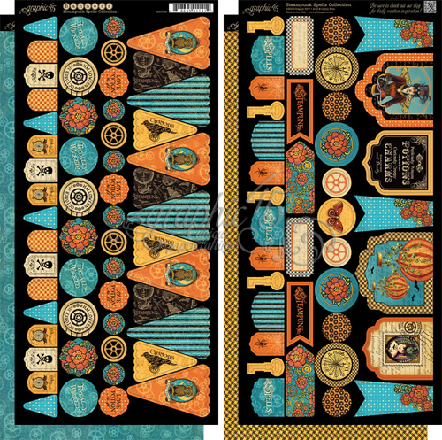 こちらのペーパー(Vintage Voyage)から、外枠、時計(大・小)2つ、こうもり2羽、「LOVE POTION」をカットアウトします。